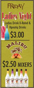 We offer Leagues, Special Events, Drink Specials, Private Parties, Internet Jukebox, 4 Big Screens, 4 Pool Tables, Gaming Machines and a good crowd. Mouse-over below for daily drink specials.